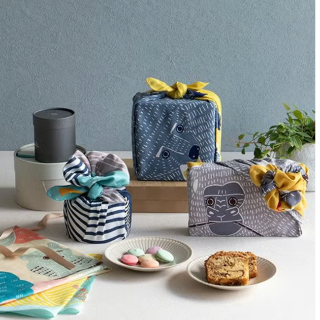 This furoshiki is made by the Japanese textile artist duo kata kata, known for their warm and narrative designs.