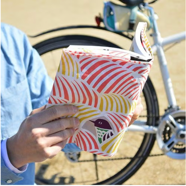 Denne furoshikien er laget av det japanske tekstilkunstnerduoen kata kata, kjent for sine varme og fortellende mønstre.