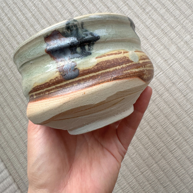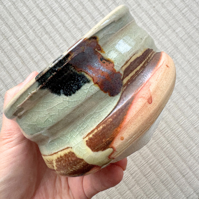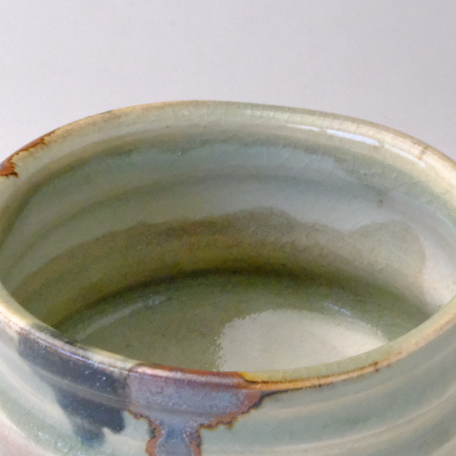 Overflaten har fine krakeleringer (kannyū) – naturlige sprekkmønstre som oppstår i glasuren under avkjøling. Disse delikate linjene gir bollen dybde og karakter, og de utvikler seg gradvis med bruk, som om bollen sakte «modnes» over tid.