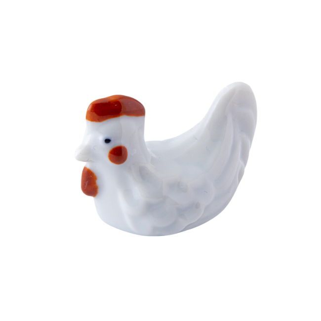 A slightly larger, solid chopstick rest shaped like a chicken.