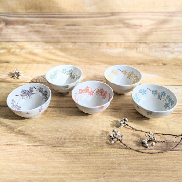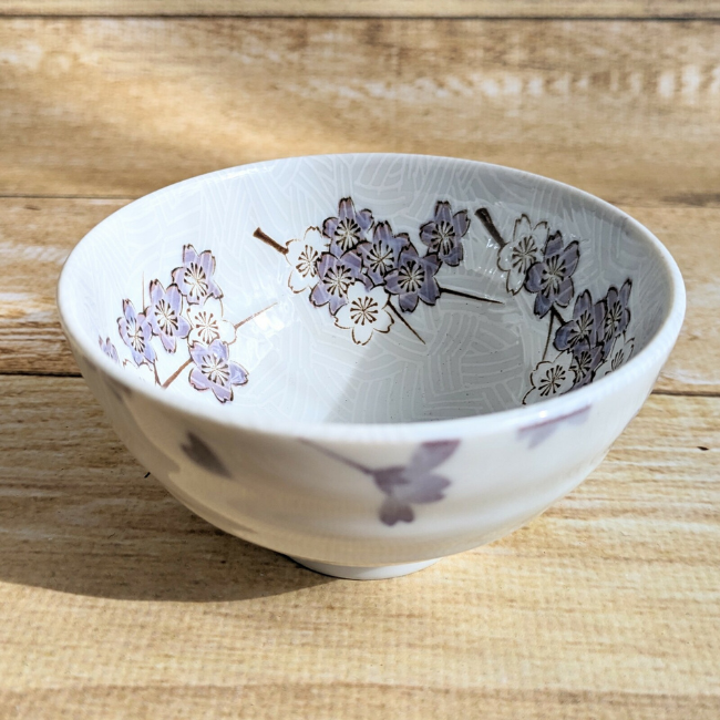 A beautifully designed Japanese rice bowl featuring cherry blossoms — the iconic flower of Japan — and the traditional Mikuzushi (“San-kuzushi”) pattern.