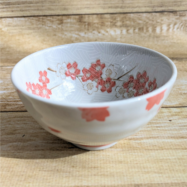 A beautifully designed Japanese rice bowl featuring cherry blossoms — the iconic flower of Japan — and the traditional Mikuzushi (“San-kuzushi”) pattern.